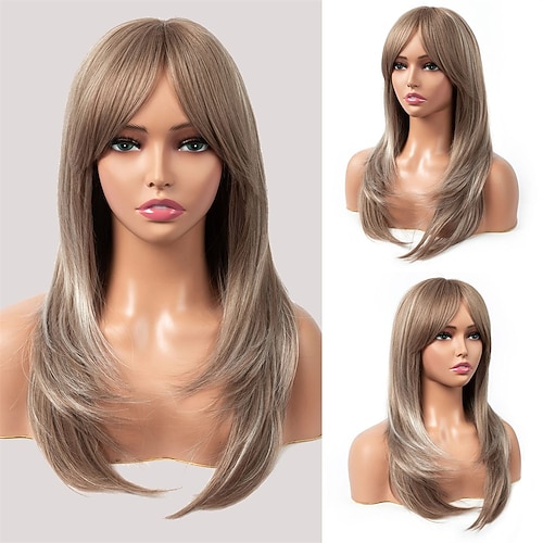 parrucche biondo platino per parrucca a strati da donna con frangia Parrucca da 22 pollici alla spalla Parrucca sintetica dall'aspetto naturale per l'uso quotidiano delle feste