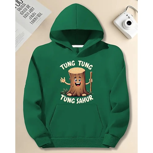 Maglietta da ragazzo a maniche lunghe con stampa Italian Brain Marciume Element Tung Tung Tung Sahur, primavera autunno, moda streetwear, bambini 4-12 anni, con cappuccio, casual, per attività