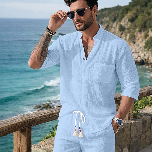 Per uomo Set di biancheria Due pezzi Set Camicia Set estivo Set abbinati Camicia casual Semplice Casuale Quotidiano Nero Bianco Grigio Azzurro Maniche a 3/4 Collo alla coreana Estate Primavera