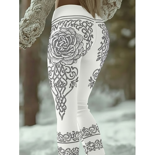 leggings vichinghi da donna, comodi, stile etnico vintage, lunghi, vita alta, stampa grafica ad albero, comodi, elastici, per le vacanze, casual, quotidiani, marrone/bianco, bianco, verde, primavera,