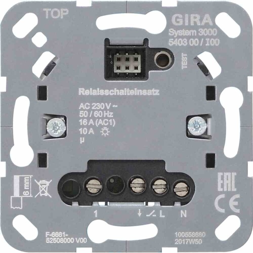 Gira System 3000 Relais-Einsatz, 16A, universal, natur, 0-2300W, Verwendbar mit Taste, Verwendbar mit Präsenzmelder, 540300