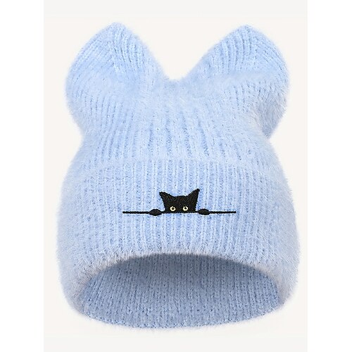 berretto da donna in maglia con orecchie di gatto, grazioso berretto caldo invernale con ricamo di gatto nero, elegante regalo di Natale per ragazze e donne