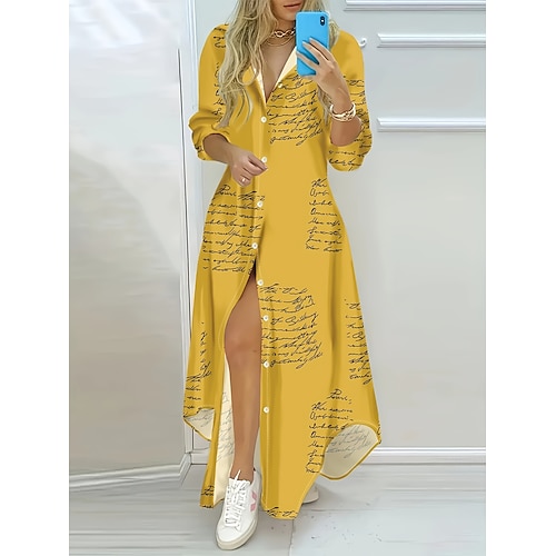Per donna Abito maxi Abito Camicia Abito blazer Tubino Vacanza Casual Feste Data Vestibilità regolare Grafico Lettera Manica Lunga Colletto a Camicia Nero Bianco Giallo Rosa Estate Primavera Autunno