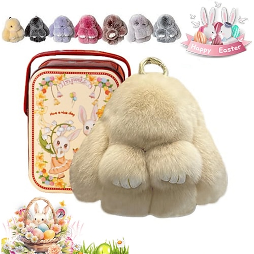 Portachiavi morbido a forma di coniglietto pasquale con latta, portachiavi di peluche a forma di coniglietto morbido fatto a mano, regalo di Natale per zaino, portachiavi con ciondolo per borsa