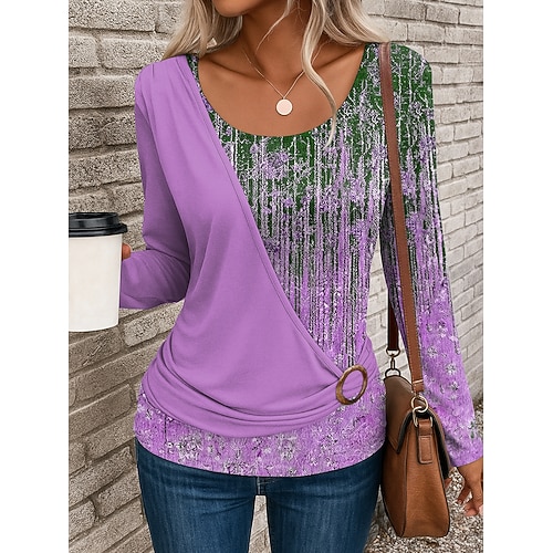 Per donna Maglietta Ombre Geometrico Vintage Casual Manica Lunga Girocollo Top Regolari Quotidiano Patchwork Stampato Rosa Blu Viola Verde Cachi Estate Autunno Inverno