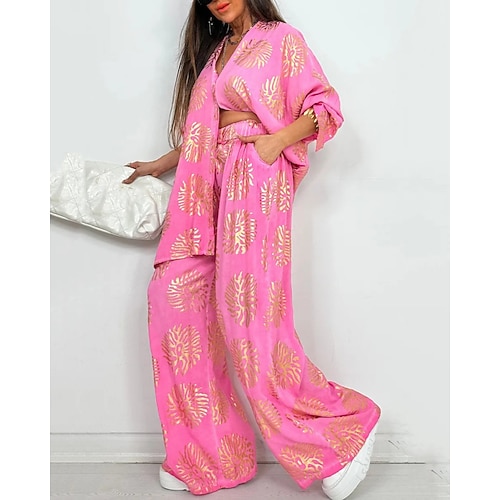 Per donna Di tendenza Top corto Completi di pantaloni Pantaloni Manica corta A V Stampe Lacci Stampa Per eventi Fine settimana Bianco Rosa Blu Estate Standard