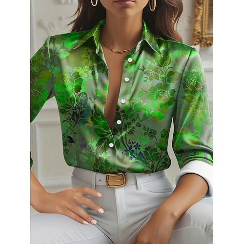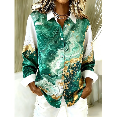 Per donna Camicia Grafico Geometrico Astratto Vintage Elegante Moderno Manica Lunga Colletto a Camicia Top Regolari Quotidiano Bottoni Stampato Bianco Giallo Verde Primavera Inverno