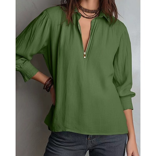 Per donna Blusa Tinta unica Elegante Quotidiano Casual Manica Lunga Colletto a Camicia Top Regolari Quotidiano Bottoni Blu Nero Bianco Vino Beige Estate Autunno
