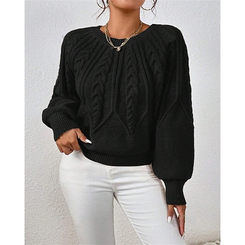 Per donna Felpa Maglione Elegante Moda Streetwear Tinta unica Girocollo Floreale Lavorato a maglia Manica Lunga Top Regolari Maglia All'aperto Quotidiano Ferie Nero Bianco Autunno Inverno