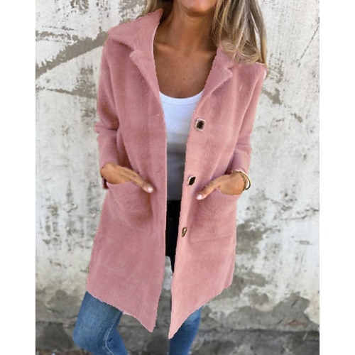 Per donna Cappotto Invernale Cappotto Caldo Confortevole Tasca Bottoni Elegante Casual Semplice Vacanza Streetwear Casuale Abbigliamento quotidiano Lungo Collo ripiegato Vestibilità regolare Manica
