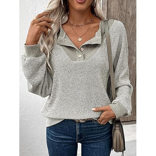 Per donna Blusa Tinta unica Elegante Casual Manica Lunga Girocollo Top Regolari Quotidiano Bottoni Nero Verde militare Rosso Blu Grigio Primavera Autunno Inverno