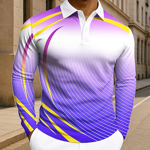 Per uomo Geometrico Linea Polo Manica Lunga Magliette polo Bavero Casual Athleisure Abbigliamento quotidiano Stampa 3D Bottoni Primavera Autunno Inverno Blu Viola Verde