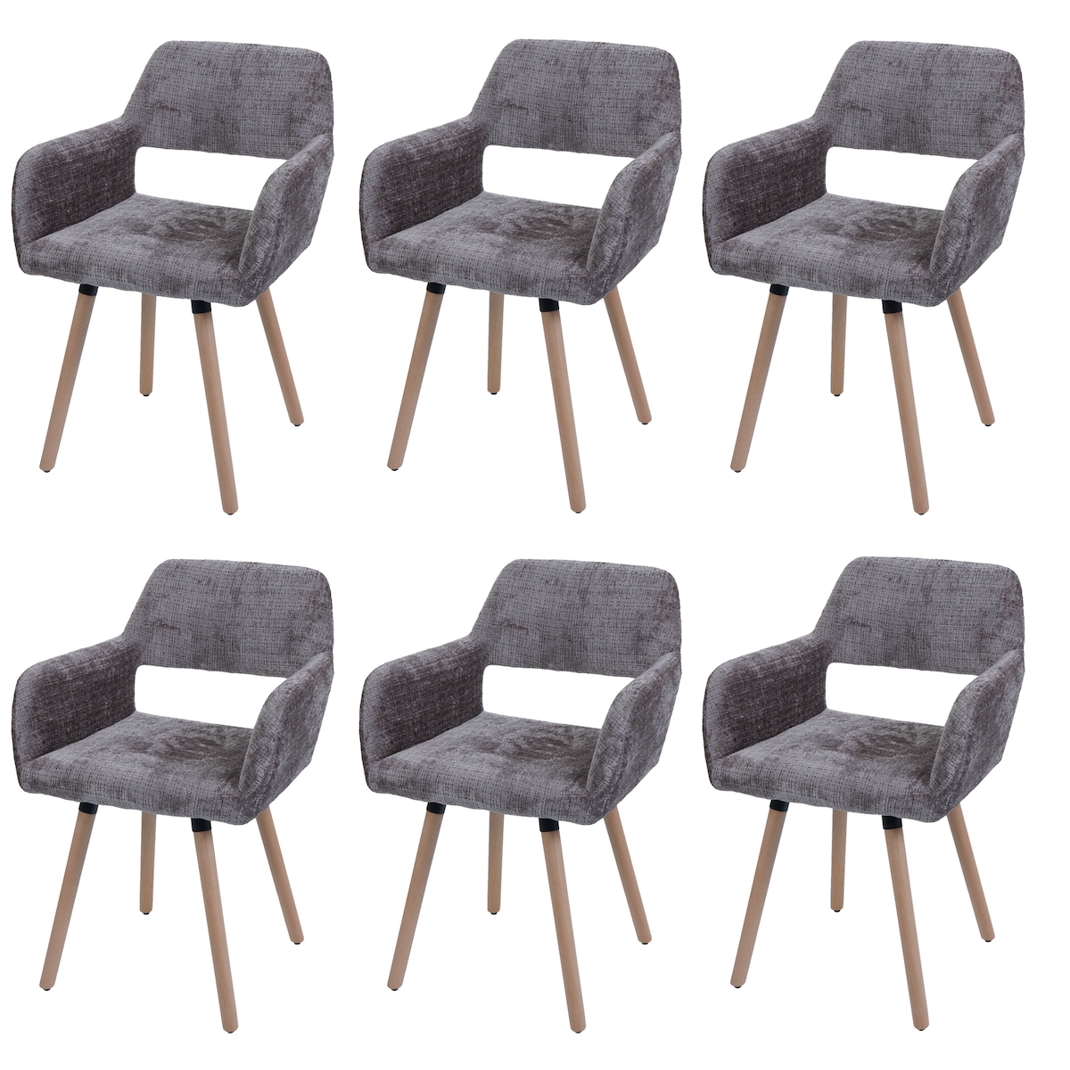 Mendler 6er-Set Esszimmerstuhl HWC-A50 II, Küchenstuhl Polsterstuhl, Holz Stoff/Textil Chenille (465g/m²) FSC® ~ braun