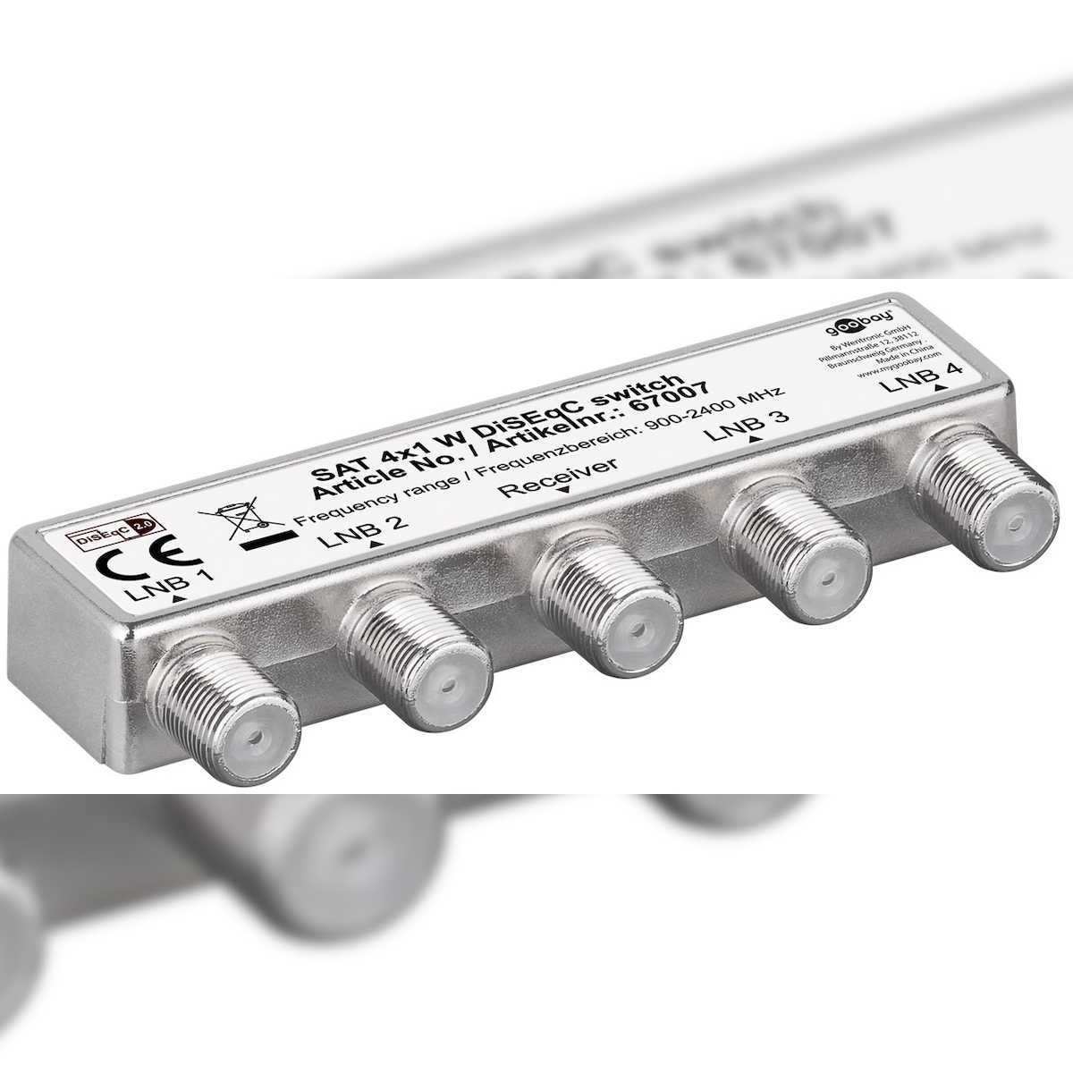 Goobay 67007 DiSEqC 2.0 Umschalter 4x1, 1 Stk. im Karton - mit Wetterschutzhaube