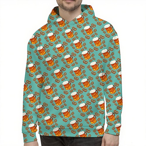bavarese Monaco Tedesco Manica a Vescovo Felpa con cappuccio Maglione Birra Grafico per Per uomo Adulti Stampa 3D per Carnevale Birra Oktoberfest Feste Casual Quotidiano