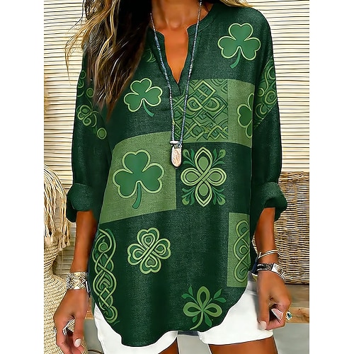 Camicia da donna Button Down Tunic Camicia colletto manica lunga floreale casual regolare tops lavoro stampa quotidiana s verde erba vino rosso viola verde primavera autunno inverno