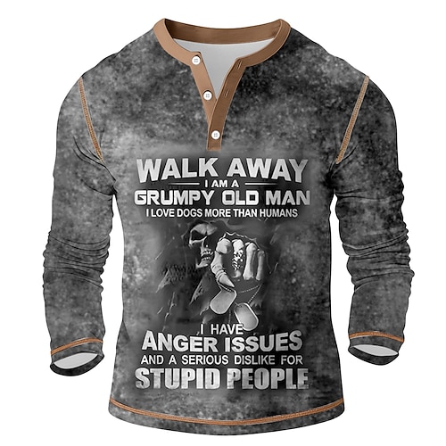 Per uomo Grafico Vintage Maglia Henley Maglietta Manica Lunga Vintage Moda Designer Casuale Quotidiano All'aperto Primavera Primavera Autunno Tutte le stagioni Marrone Scuro Esercito verde Grigio