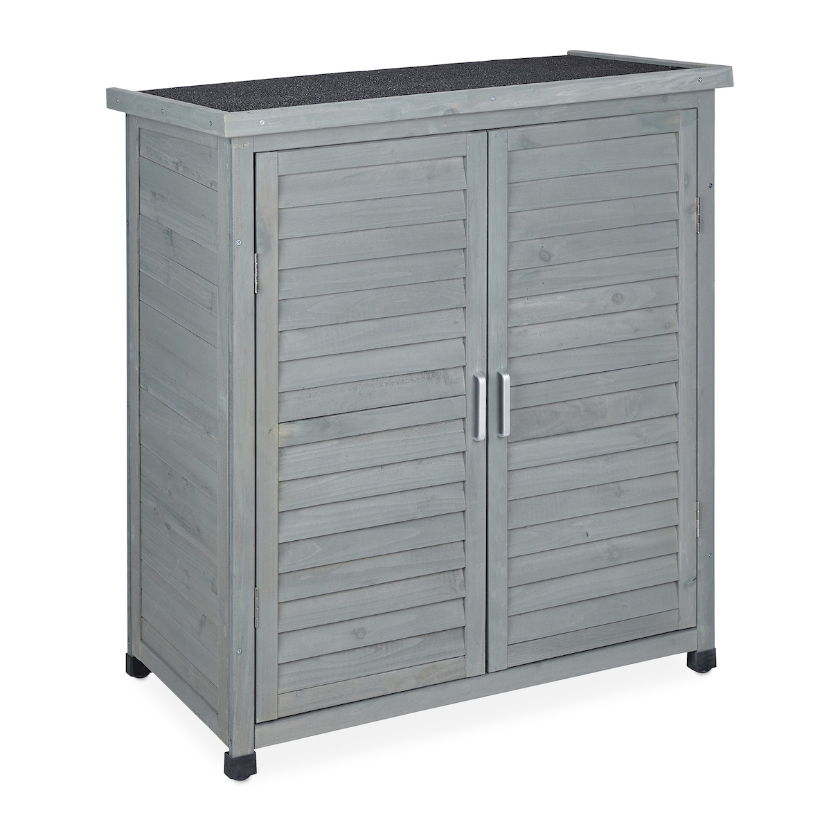 Relaxdays Gartenschrank, 3 Fächer, Flachdach mit Neigung, Doppeltür, HBT: 97 x 86,5 x 47 cm, Werkzeugschrank, Holz, grau