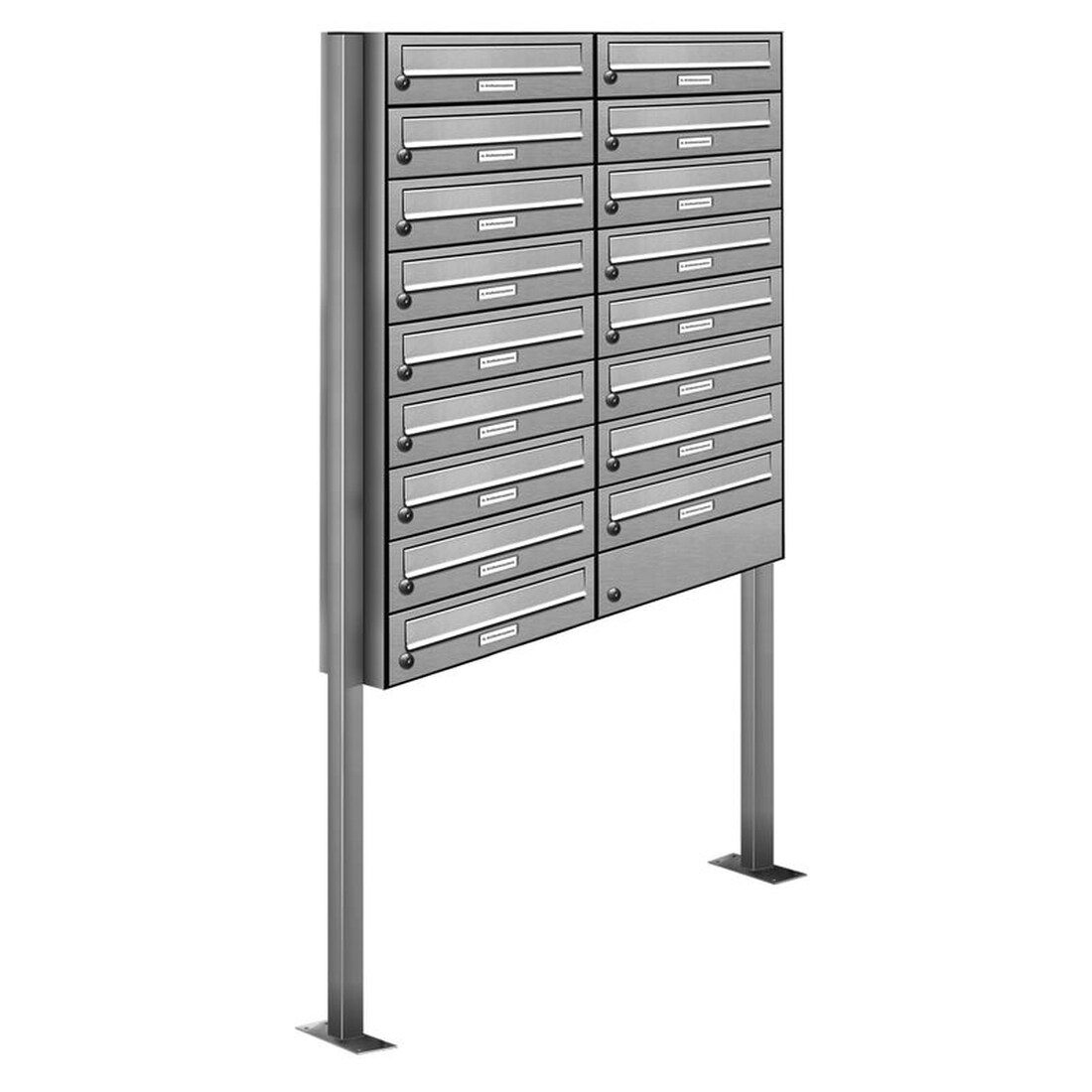 AL Briefkastensysteme 17 Fächer Premium Edelstahl Stand Briefkasten Anlage für Post A4 modern, robust, wetterfest, Artikelnummer: 132T17S2