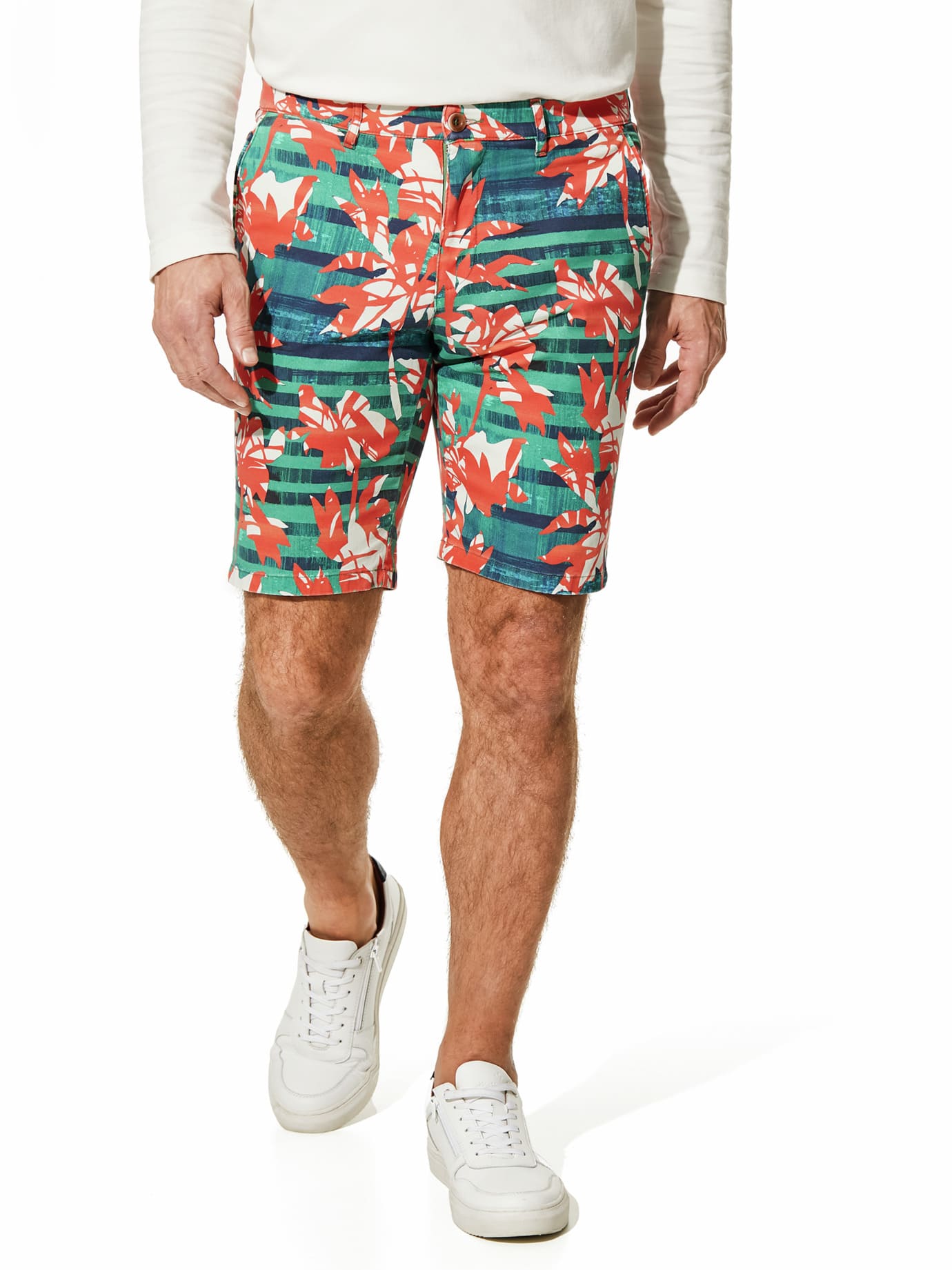 Walbusch Herren Organic Cotton Bermuda-Hose Orange gemustert