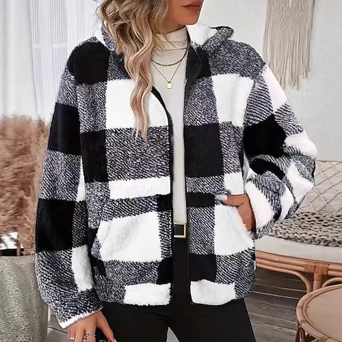 Per donna Giacca in Pile Cappotto invernale Spesso Caldo Con zip Manica Lunga Gli sport Blocco di colori Top Per All'aperto Viaggio Vacanze Abbigliamento sportivo
