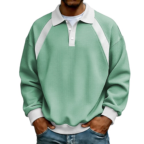 Per uomo Magliette Polo a Nido d'Ape Polo Casuale Streetwear Bavero Manica Lunga Essenziale Moderno Blocco di colori Patchwork Bottoni Primavera Autunno Vestibilità regolare Nero Verde chiaro Blu