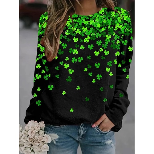 T Shirt da donna per il giorno di San Patrizio con grafica trifoglio elegante classica casual a maniche lunghe girocollo top regolari stampa quotidiana nero verde grigio primavera autunno