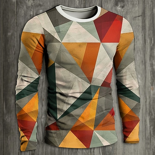 Maglietta a maniche lunghe con stampa geometrica retrò da uomo, vintage, a blocchi di colore, con triangolo, grafica, casual, arte astratta, girocollo, pullover, abbigliamento, top, s m l xl xxl xxxl