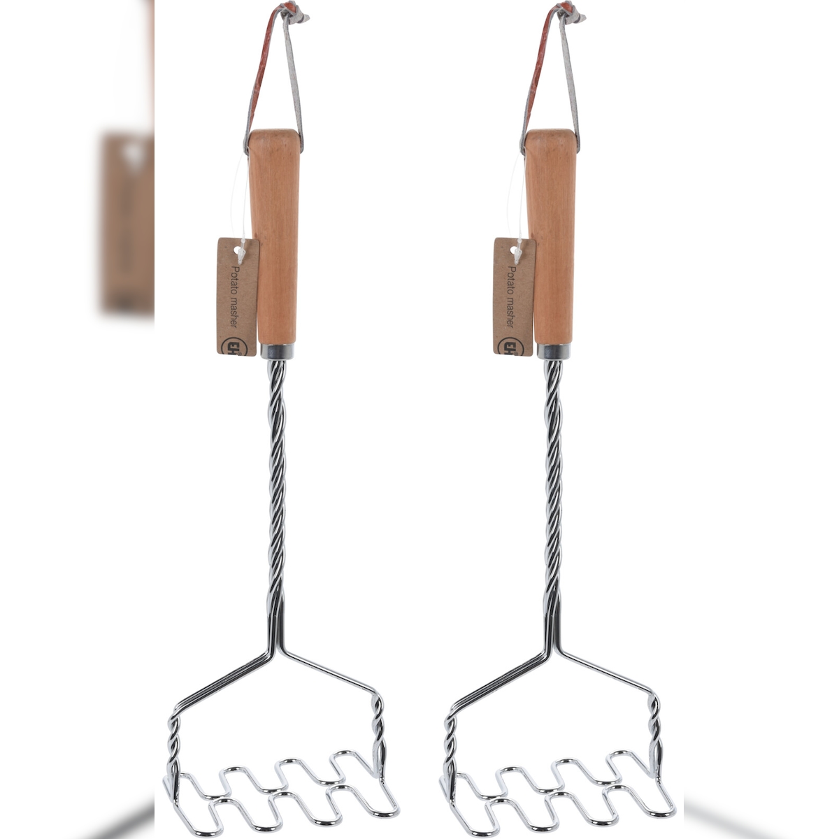 2x Kartoffelstampfer Küchenutensilien Edelstahl Silber Holzgriff 34 cm
