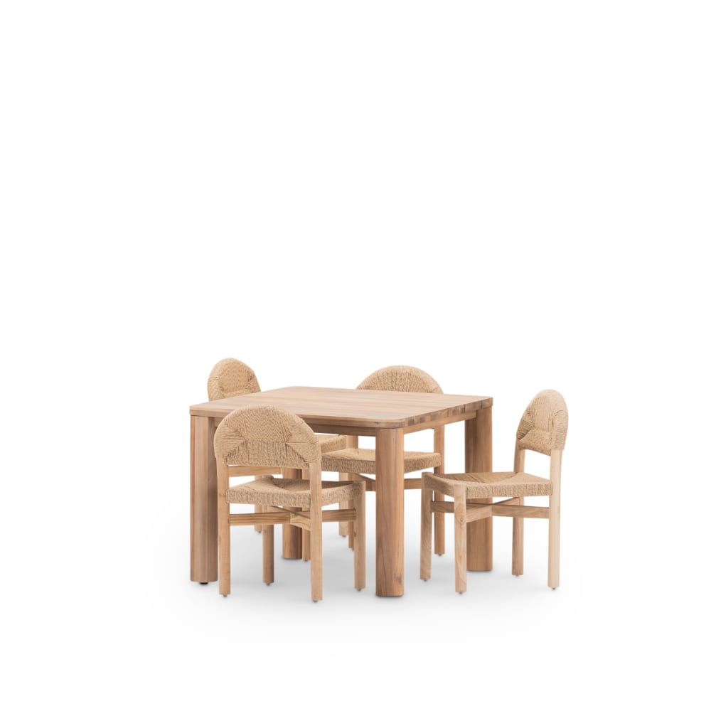 Set di tavolo 100x100cm e 4 sedie in legno e rattan beige