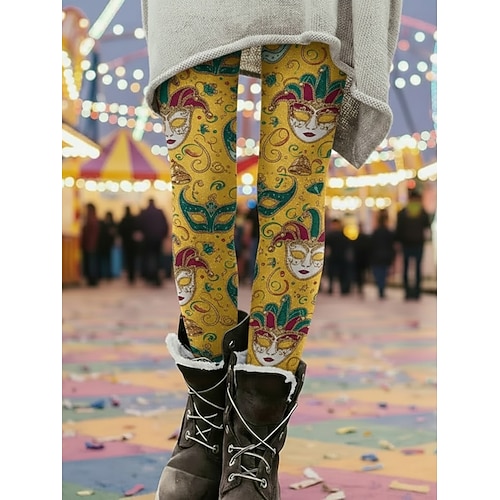 leggings da donna di carnevale, comodi, stile etnico vintage, pantaloni a vita alta, lunghi, stampa grafica, comodi, elasticizzati, casual, quotidiani, per le vacanze, giallo, fucsia, viola, verde,