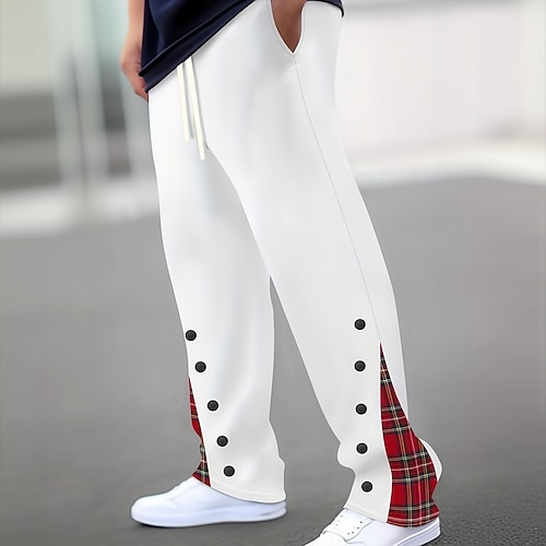 Per uomo Motivi a griglia / plaid Stampa di bottoni finti Pantaloni Pantaloni casual Misura del girovita medio Vita elastica con coulisse Casual All'aperto Ferie Pantaloni a gamba dritta Primavera