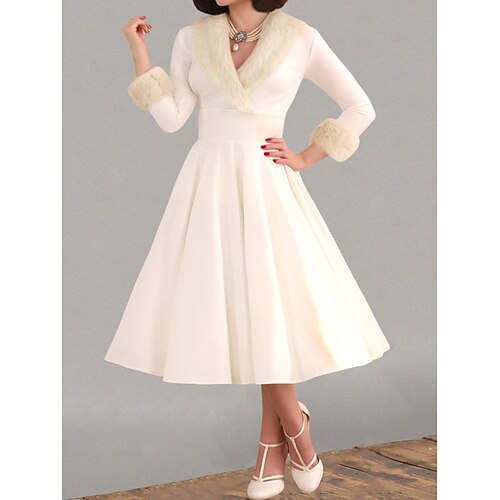 Abito midi da donna abito a linea casual quotidiano appuntamento uscita vestibilità regolare tinta unita maniche 3/4 scollo a V nero bianco rosso primavera autunno inverno