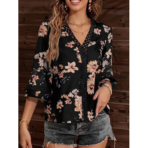 Per donna Blusa Floreale Vintage Elegante Casual Manica 3/4 Scollo a V Top Regolari Quotidiano Stampato Blu Nero Rosa Rosso Marrone Estate Primavera Autunno