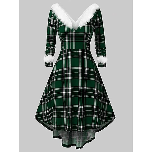 Abito midi da donna abito a linea casual quotidiano vestibilità regolare tinta unita maniche lunghe scollo a V nero rosso verde primavera autunno inverno
