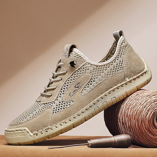 sneakers slip-on beige da uomo con tomaia in mesh traspirante e suola ammortizzata per un comodo abbigliamento casual
