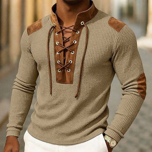 Per uomo Camicia a nido d'ape Maglietta Camicie da uomo con toppe sui gomiti Manica Lunga Colletto Primavera Primavera Autunno Blocco di colori Vintage Designer Essenziale Allacciato Patchwork