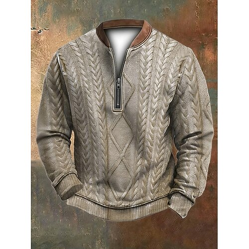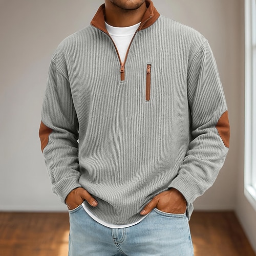 Per uomo Maglia Felpa con zip corta Nero Marrone Grigio Mezza zip Blocco di colori A coste Testurizzato Trama a maglia Quotidiano Sport Outdoor Ferie Poliestere Streetwear Casual Primavera Autunno