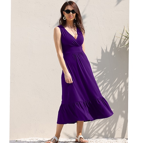 abiti lunghi swing casual senza maniche con scollo a V da donna