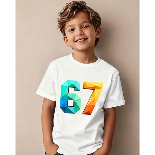 Cotone Bambini Ragazzi Nero Bianco Grafico Gergo divertente 67 Maglietta Blusa Girocollo Manica Corta All'aperto Abbigliamento Quotidiano Moda Streetwear Designer Stampa Estate
