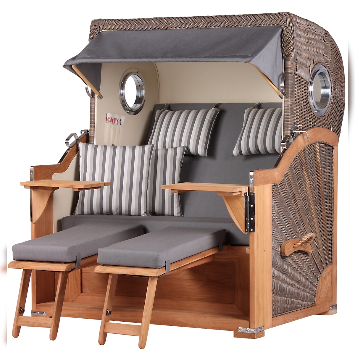 Mr. Deko Strandkorb - bene living - Königssee Teak Bullauge - PE grau - Modell 544 - inkl. Liftersystem
