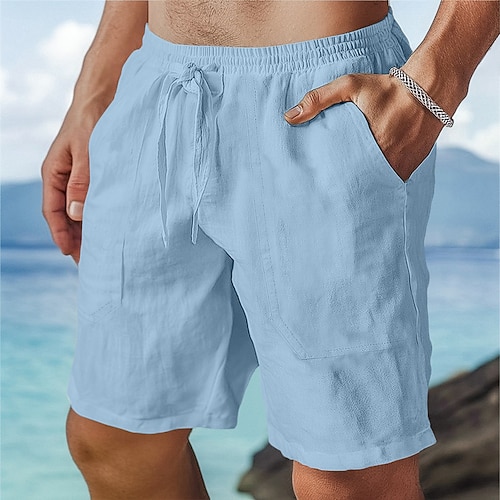 Per uomo Shorts Shorts di Lino Pantaloncini Estivi Shorts da Spiaggia Coulisse Elastico in vita Semplice Comodità Traspirante Lunghezza al ginocchio Quotidiano All'aperto Spiaggia Vacanza Moda Blu