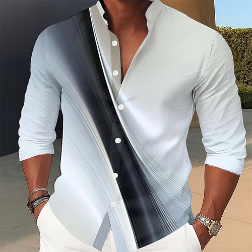Per uomo A righe Quadri Motivo Geometrico Camicia Camicia con Bottoni Manica Lunga Moda Streetwear Designer All'aperto Streetwear Quotidiano Estate Primavera Autunno Collo alla coreana Stampato