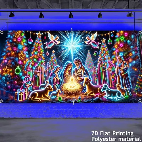 Copertura per porta da garage con luce nera natalizia, stampa della nascita di Gesù con scena della natività, grande sfondo da appendere per feste all'aperto, chiesa, casa, cortile, decorazione per
