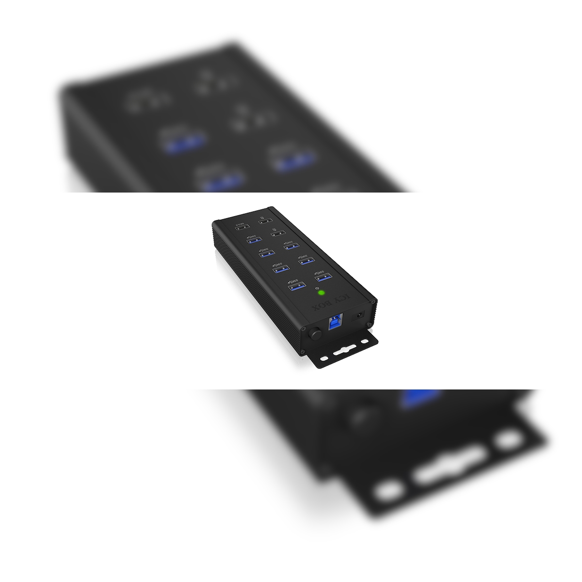 ICY BOX IB-HUB1703-QC3 - USB 3.2 Gen 1 (3.1 Gen 1) Type-B - USB 3.2 Gen 1 (3.1 Gen 1) Type-A - 5000 Mbit/s - Schwarz - Aluminium - 0,71 m