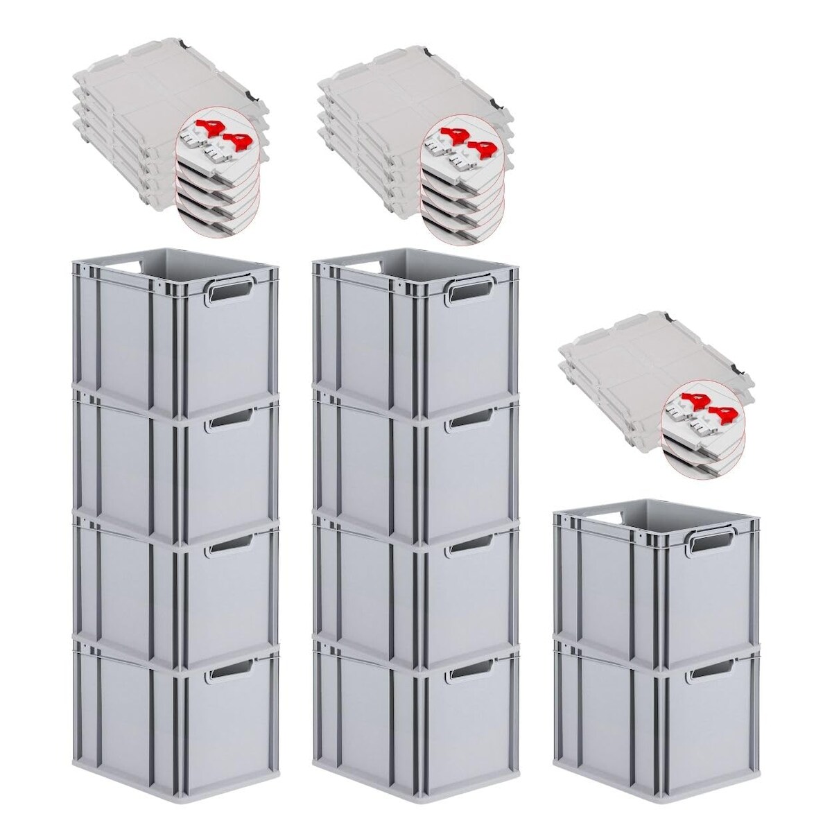 PROREGAL SuperSparSet 10x Eurobox NextGen Economy mit Scharnierdeckel & roten Verschlüssen, Griffe offen, HxBxT 32x30x40cm, 30L, Eurobehälter, Box