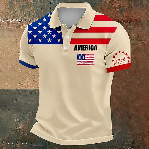 Giorno dell'Indipendenza Americana Per uomo Bandiera Americana Polo Manica Corta Magliette polo Bavero Casual Athleisure Abbigliamento quotidiano Abbigliamento da festa Stampa 3D Bottoni Estate Blu
