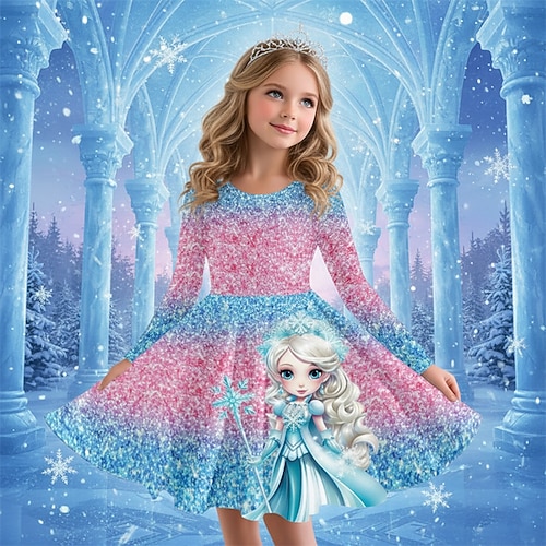ragazze' 3D Grafico Anime Abito Manica Lunga Stampa 3D Primavera Autunno Performance Vacanza Feste Casual Principessa Bello Bambini 4-12 Anni Vestito Casual Abito a trapezio Lunghezza al ginocchio