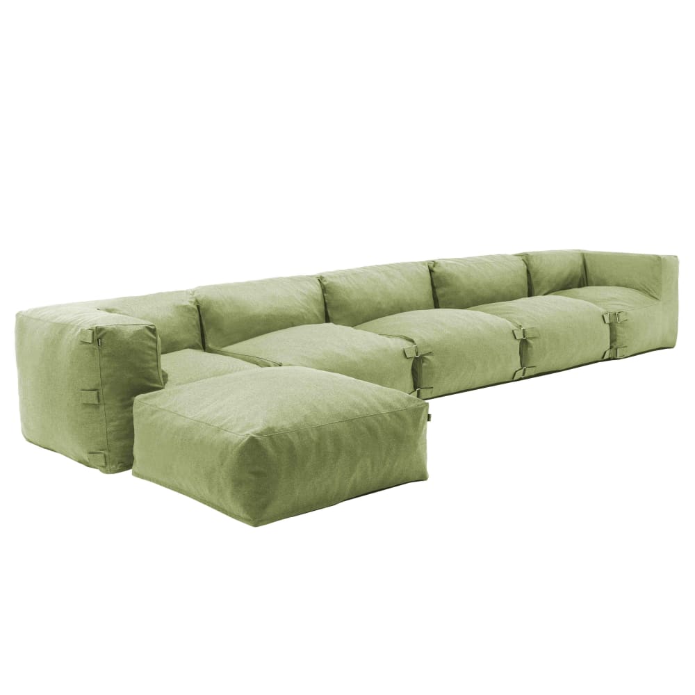 Divano ad angolo modulabile, 3 poltrone, 2 angoli e 1 pouf cactus