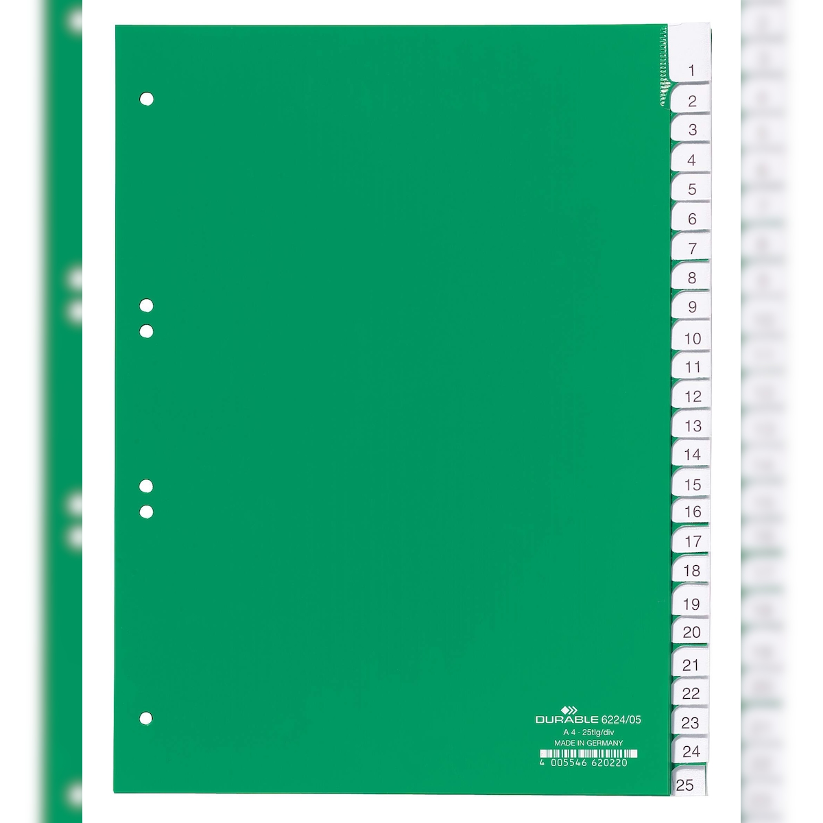 Durable Ordnerregister für A4 25tlg gn umschweißte Tabe